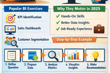Business intelligence (BI) isn’t just about dashboards or tools.It’s about thinking clearly with data and turning numbers into decisions. Business intelligence exercises help you practice real-world scenarios.They sharpen analytical thinking, improve data storytelling, and build job-ready skills. What Are Business Intelligence Exercises? Business intelligence exercises are structured activities that simulate…